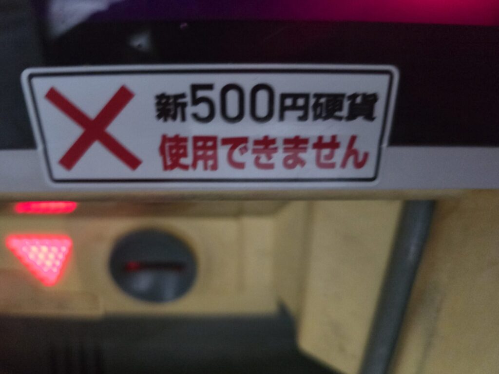 機械にはちゃんと「新500円硬貨は使えません」と書いてある