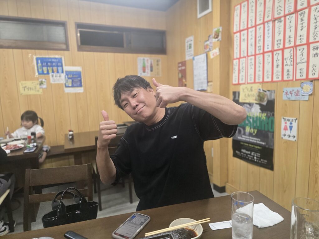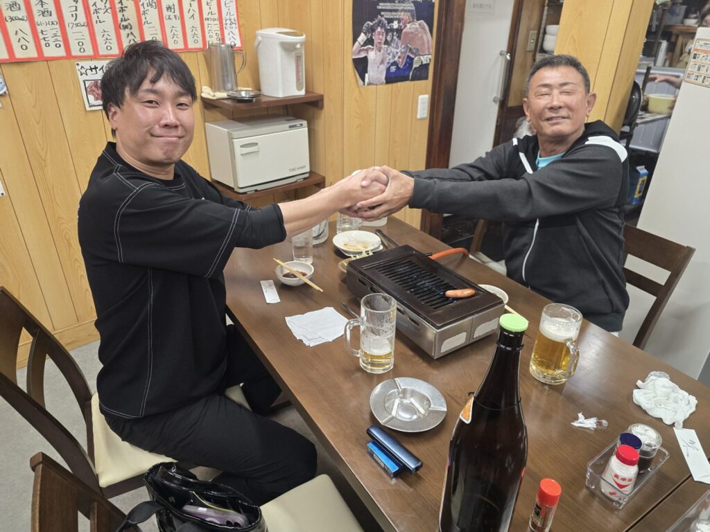 焼肉屋で固い握手