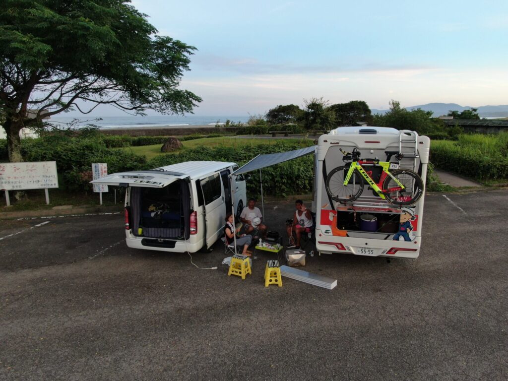 お盆の道の駅は大盛況で、車中泊の車がびっしり