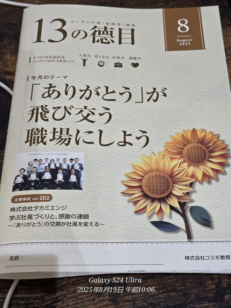以前、食堂で中のスタッフさん達がありがとうのキャッチボール