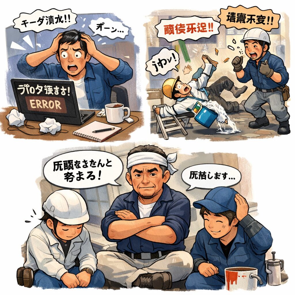 職人さんが怪我や、塗装の失敗もしたこと