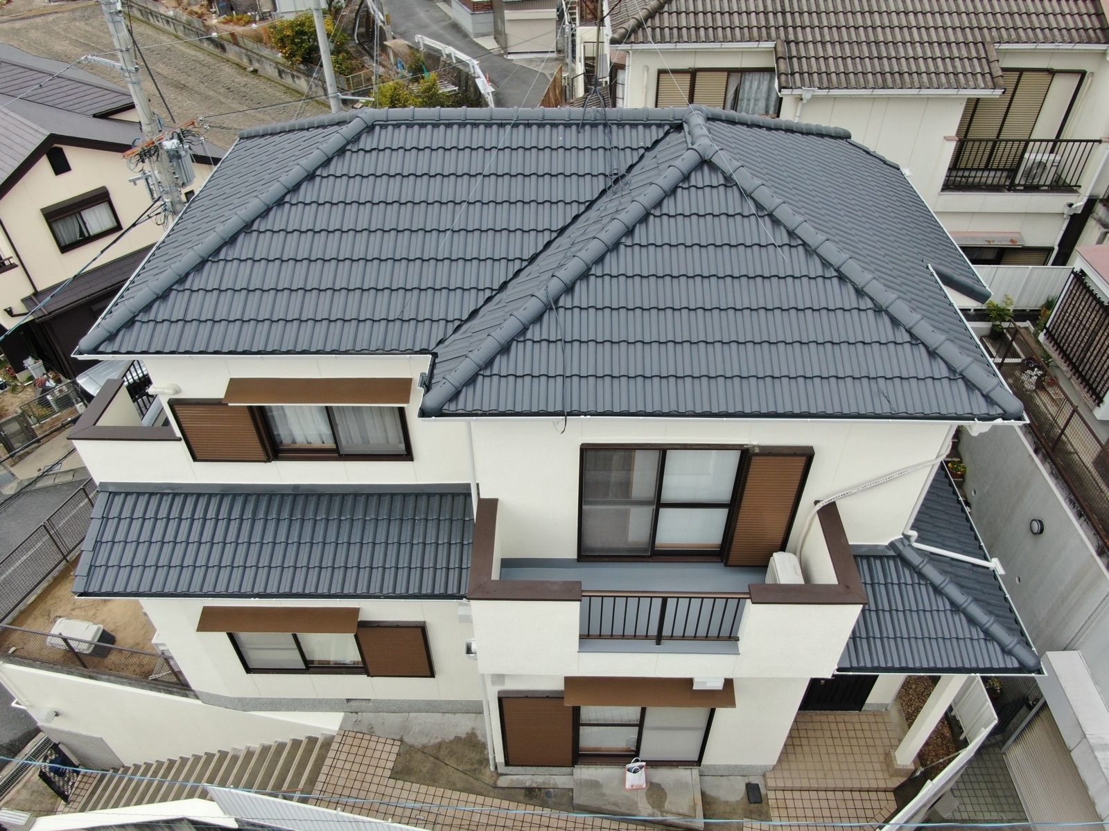 屋根全体が引き締まり、外壁とのバランスも良く、建物全体に統一感のある仕上がりとなっています。