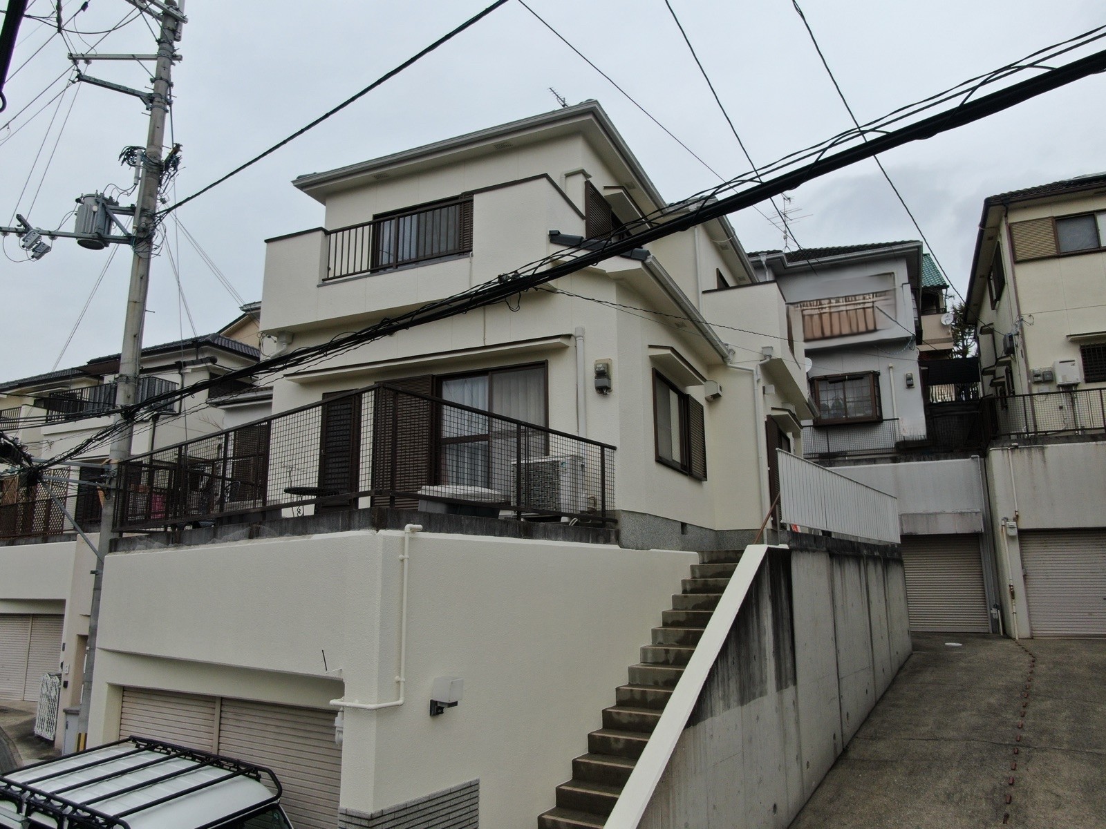 生駒市SKI様邸にて、外壁・屋根塗装工事を担当させていただきました。 施工前は、外壁に色あせや雨だれによる汚れが見受けられ、全体的にくすみが出ている状態でしたが 今回の塗装工事により、明るく清潔感のある外観へと一新されました🏡✨ 外壁には【日本ペイント/パーフェクトトップ】を使用。高い耐候性と低汚染性を兼ね備えた塗料で、 紫外線や雨風からしっかりと建物を守りながら、美しい状態を長く維持してくれます。 やわらかく上品な色合いに仕上がり、周囲の街並みにも自然に溶け込む外観となりました。 また、屋根には【日本ペイント/ファインパーフェクトベスト】を採用し、防水性・耐久性をしっかり確保。 屋根全体が引き締まり、外壁とのバランスも良く、建物全体に統一感のある仕上がりとなっています。 今回の工事により、美観の向上はもちろん、建物の保護性能も高まり、 これからも安心してお住まいいただける状態となりました😊 S様、このたびは数ある塗装店の中から平松塗装店にご依頼いただき、誠にありがとうございました。