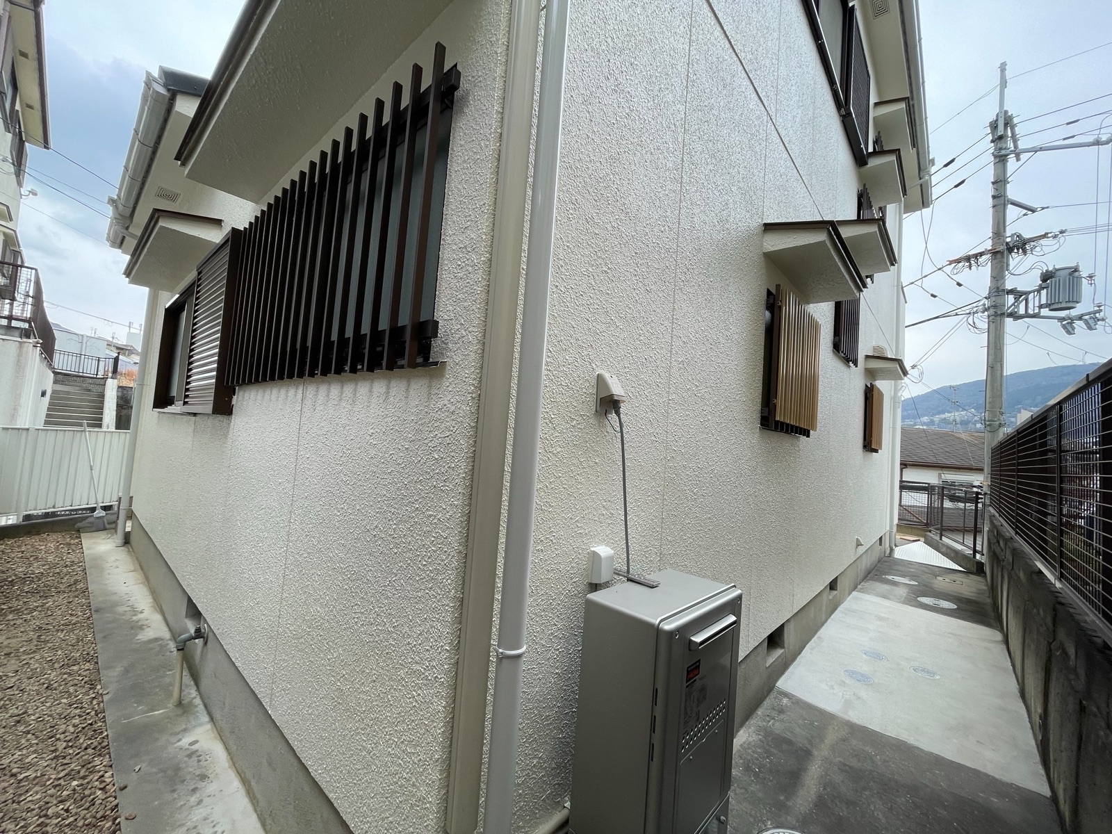 外壁には【日本ペイント/パーフェクトトップ】を使用。高い耐候性と低汚染性を兼ね備えた塗料で、