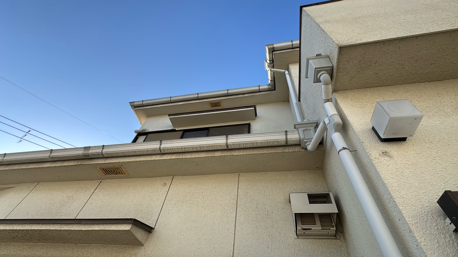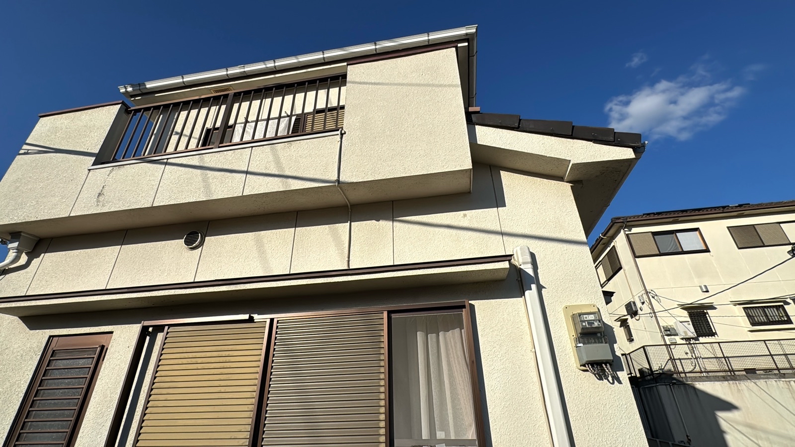 施工前は、外壁に色あせや雨だれによる汚れが見受けられ、全体的にくすみが出ている状態でしたが