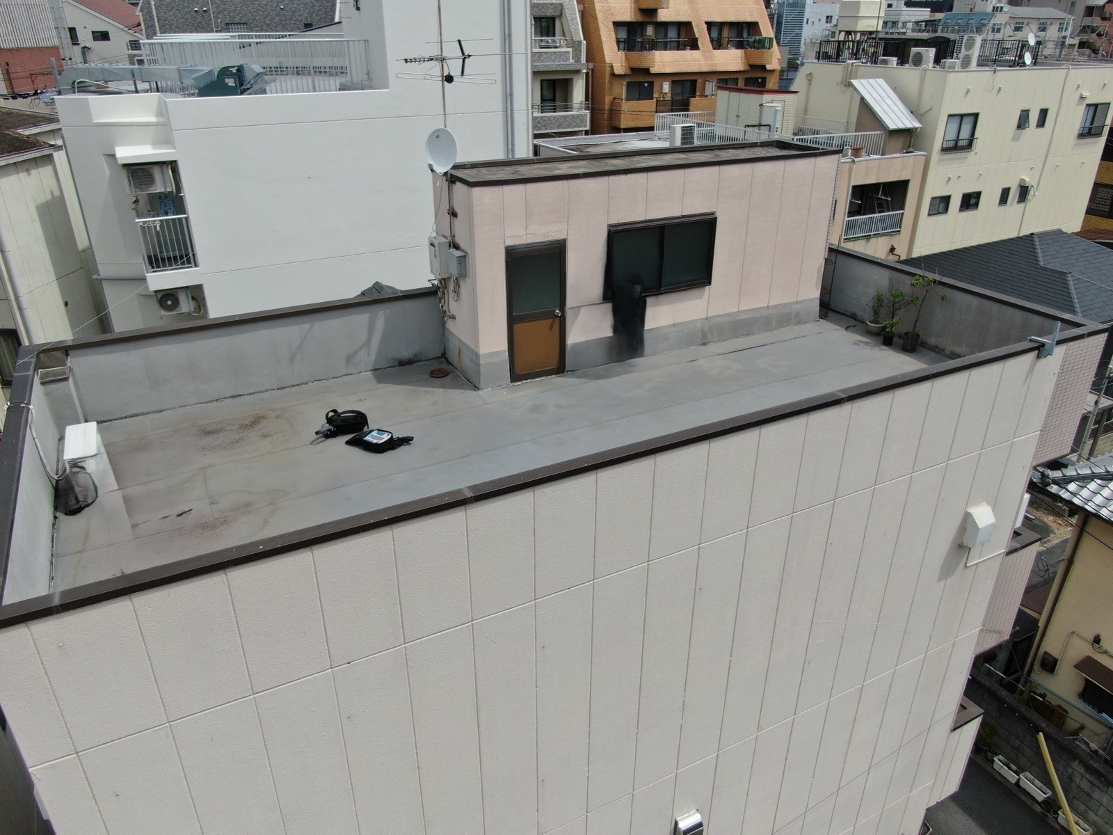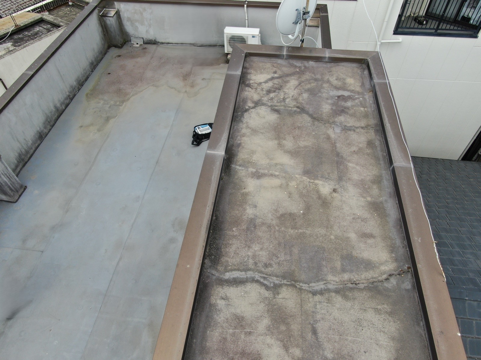 屋上全体が色褪せ、汚れや劣化が目立っていましたが、