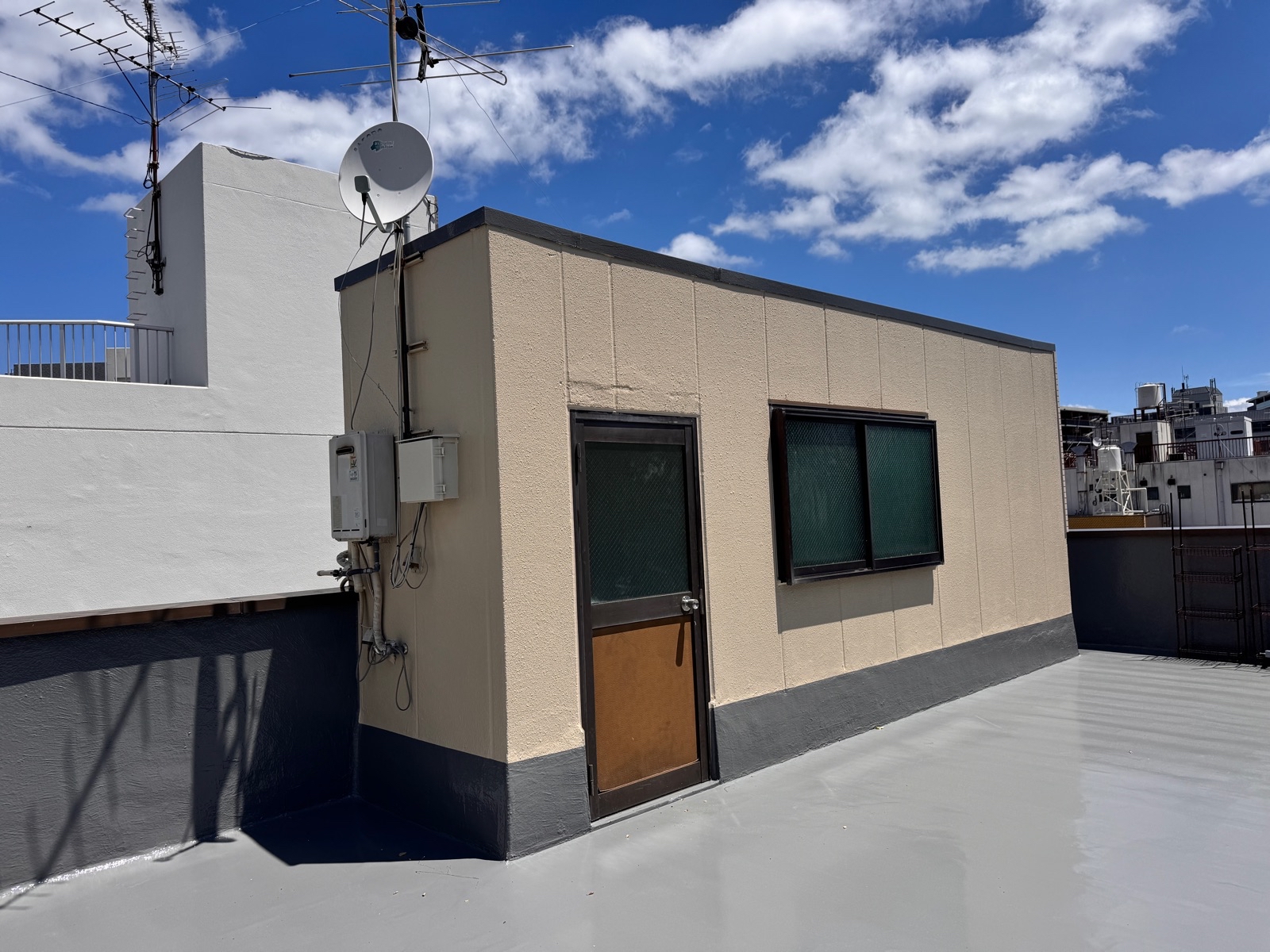 施工後はスッキリとした防水層とともに、外観全体が明るく清潔感のある仕上がりになりました😊