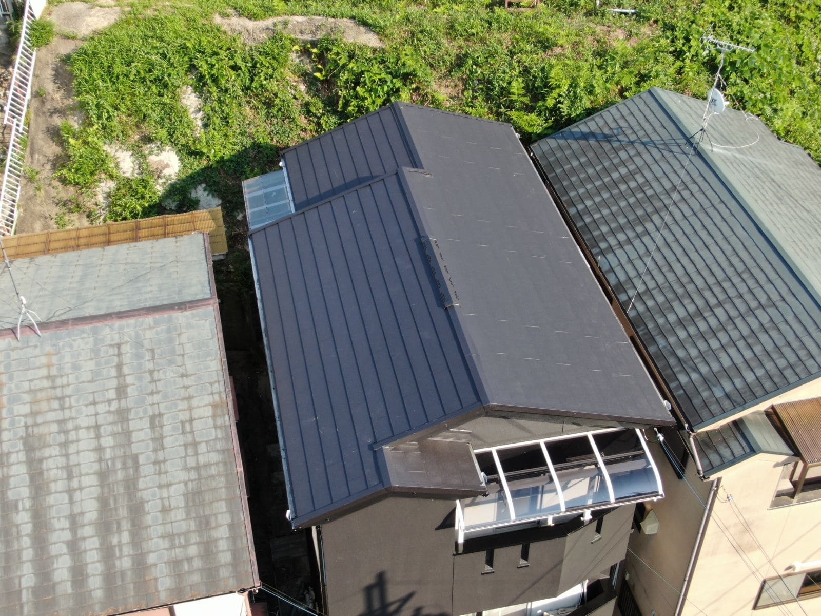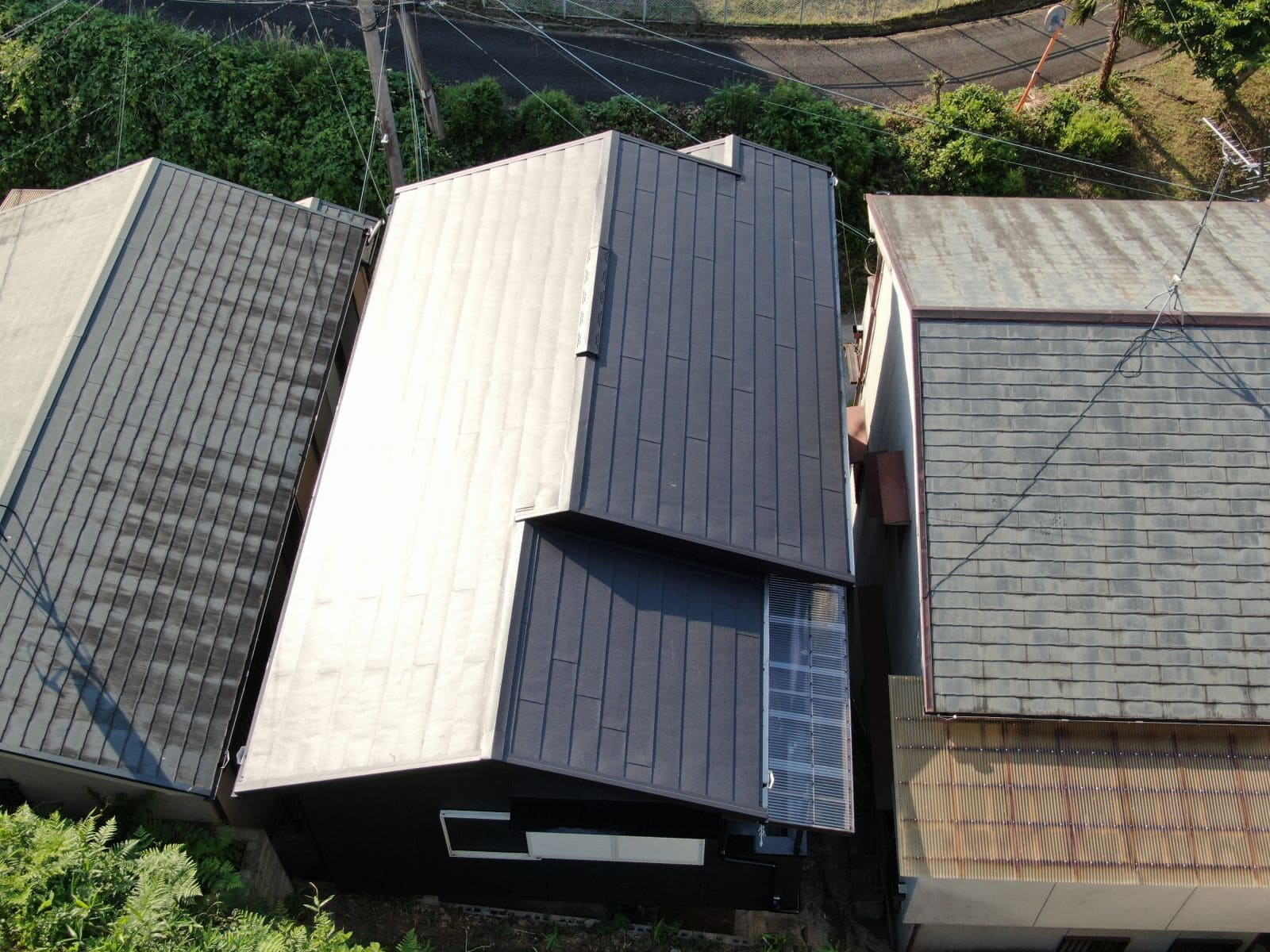 奈良市のHYS様邸にて、外壁の塗装工事・屋根のカバー工事をさせていただきました。 外壁には、日本ペイント「水性シリコンセラUV」を採用。 紫外線や風雨による劣化に強く、防カビ・防藻性にも優れた扱いやすい塗料です。 落ち着いたブラック系の色味を選ばれたことで、全体が引き締まり、シックで重厚感のある印象に生まれ変わりました。 また屋根には、アイジー工業「スーパーガルテクト」を使用。 軽量で断熱性に優れた金属屋根材で、既存の屋根をカバーする工法により、見た目も性能面もグレードアップしています🏠👆 敷地と建物の形状上、足場の組立や作業スペースの確保に少し工夫が必要でしたが、 近隣の皆さまのご理解とご協力もあり、安全第一で無事に工事を完了することができました。 HYS様、このたびは大切なお住まいの改修工事をお任せいただき、誠にありがとうございました。