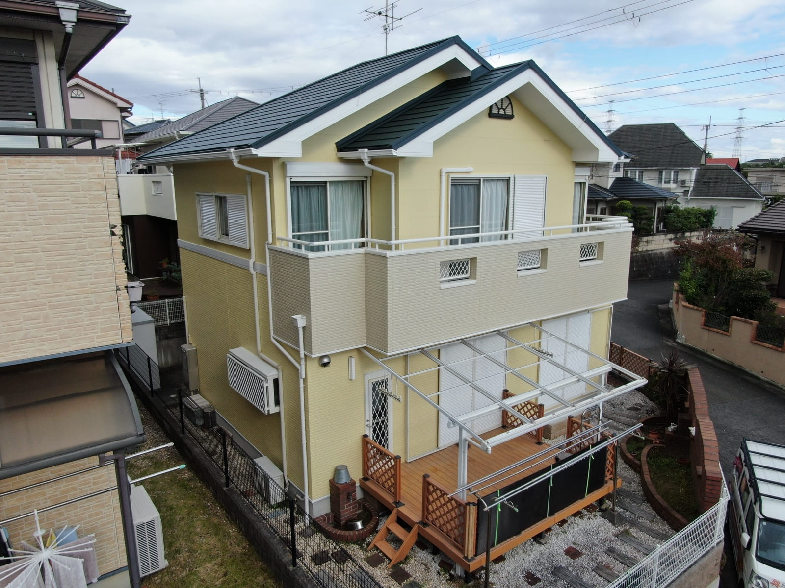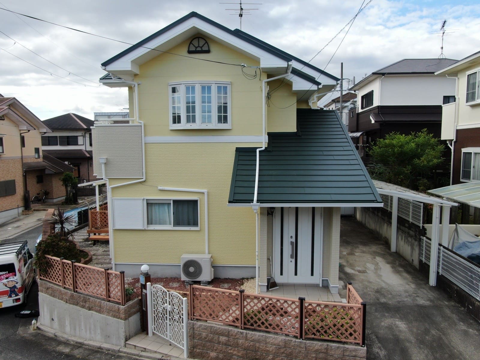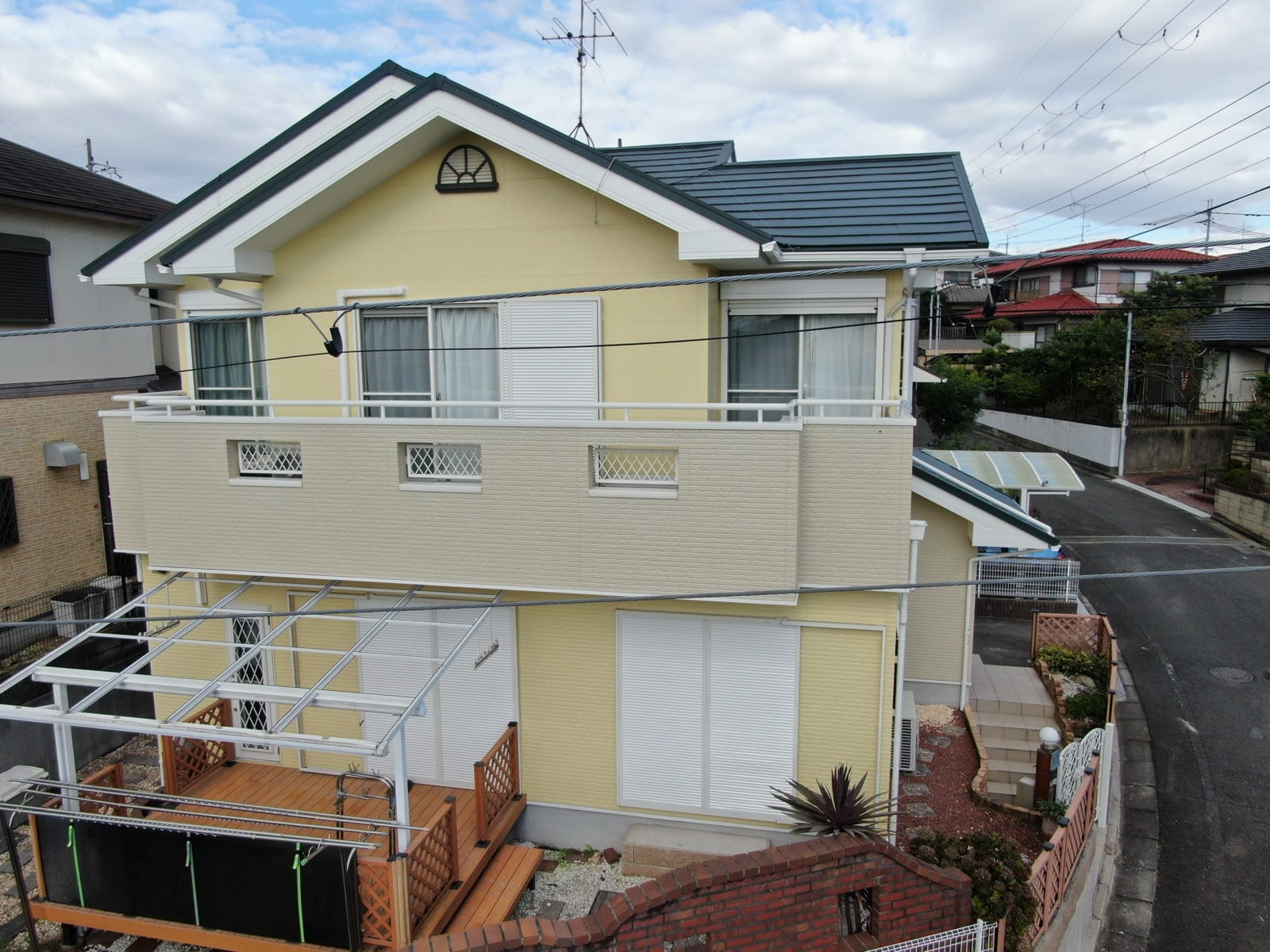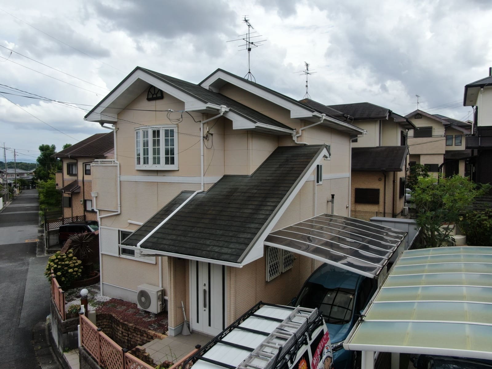 FJI様邸にて、外壁塗装および屋根カバー工事を担当させていただきました。