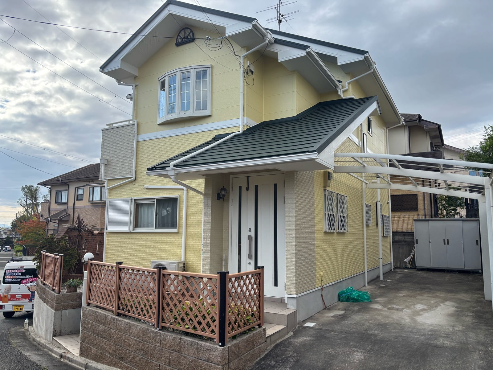 FJI様邸にて、外壁塗装および屋根カバー工事を担当させていただきました。 外壁には、超低汚染・高耐候性・遮熱性を兼ね備えた アステックペイント「超低汚染プラチナリファイン2000MF-IR」を使用。 屋根は既存のスレート材の上から新たに高耐久金属屋根材「スーパーガルテクト」を重ねる 「屋根カバー工法」にて施工しました。 今回の仕上がりは,、爽やかなイエローの外壁が印象的で、 お家全体がぐっと明るく華やかな雰囲気に生まれ変わりました🌼✨ 白の付帯部とのコントラストも美しく、街並みに映える外観となっています🏠 この度は大切なお住まいのリフォームを弊社にお任せいただき、誠にありがとうございました。 今後とも末永いお付き合いのほど、よろしくお願いいたします。