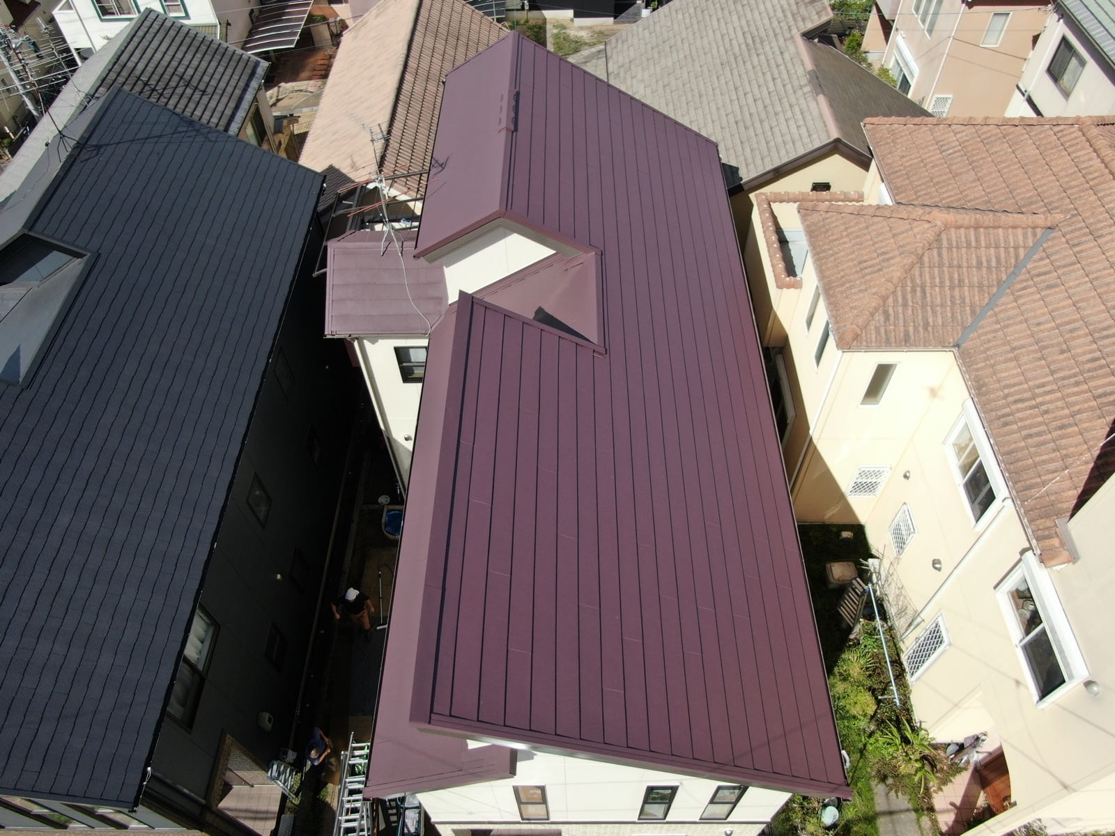 屋根は、既存の屋根材を撤去せずに新しい屋根材を重ねるカバー工法にて施工。