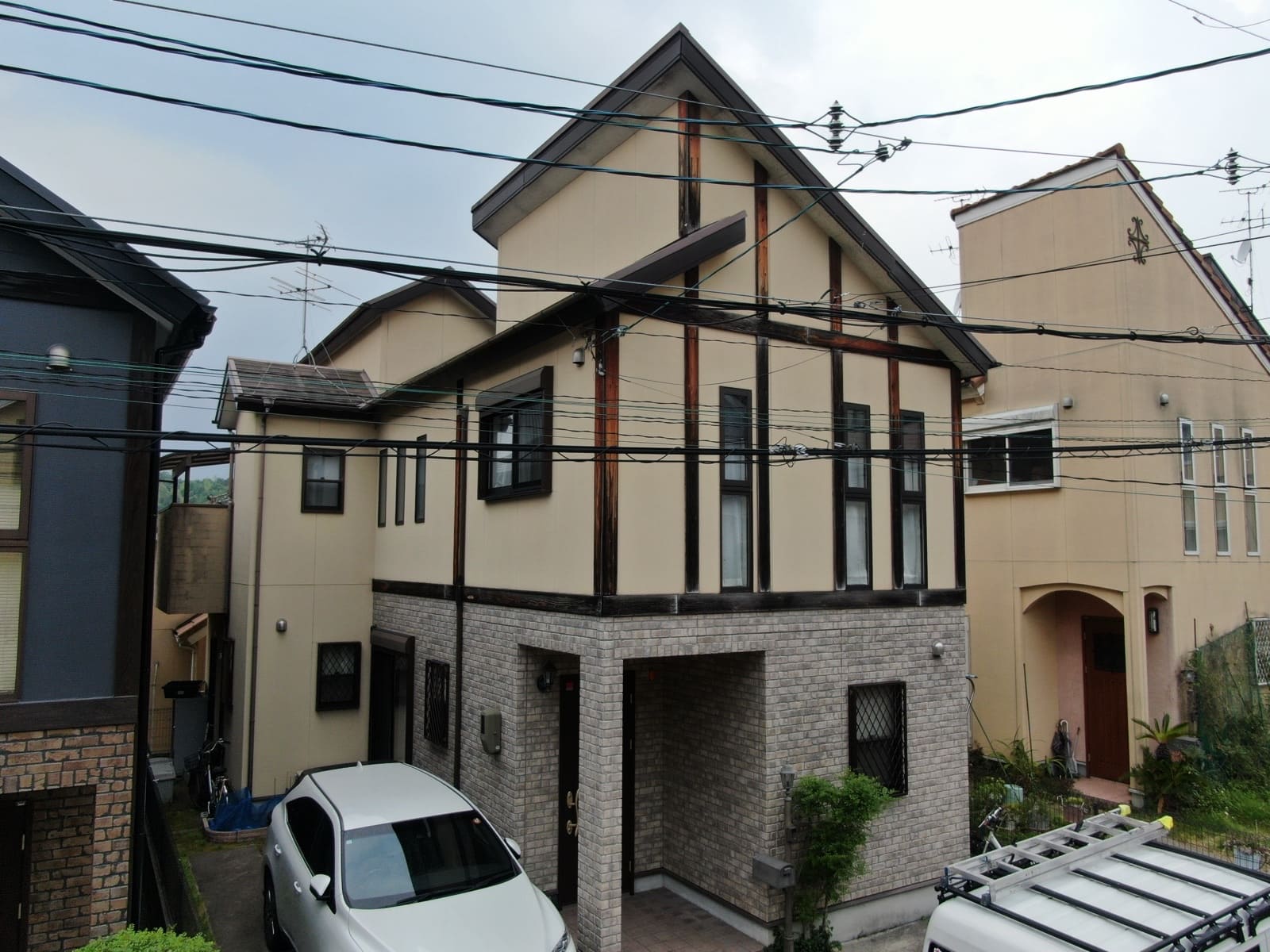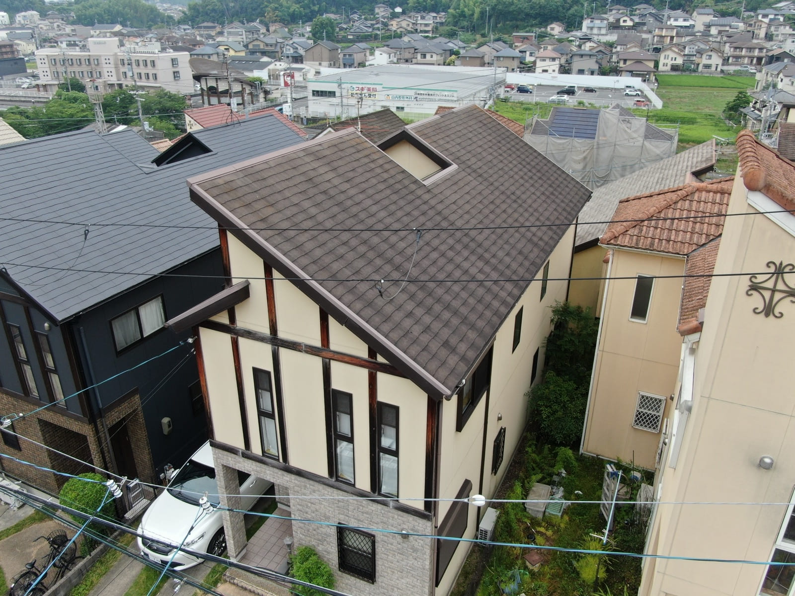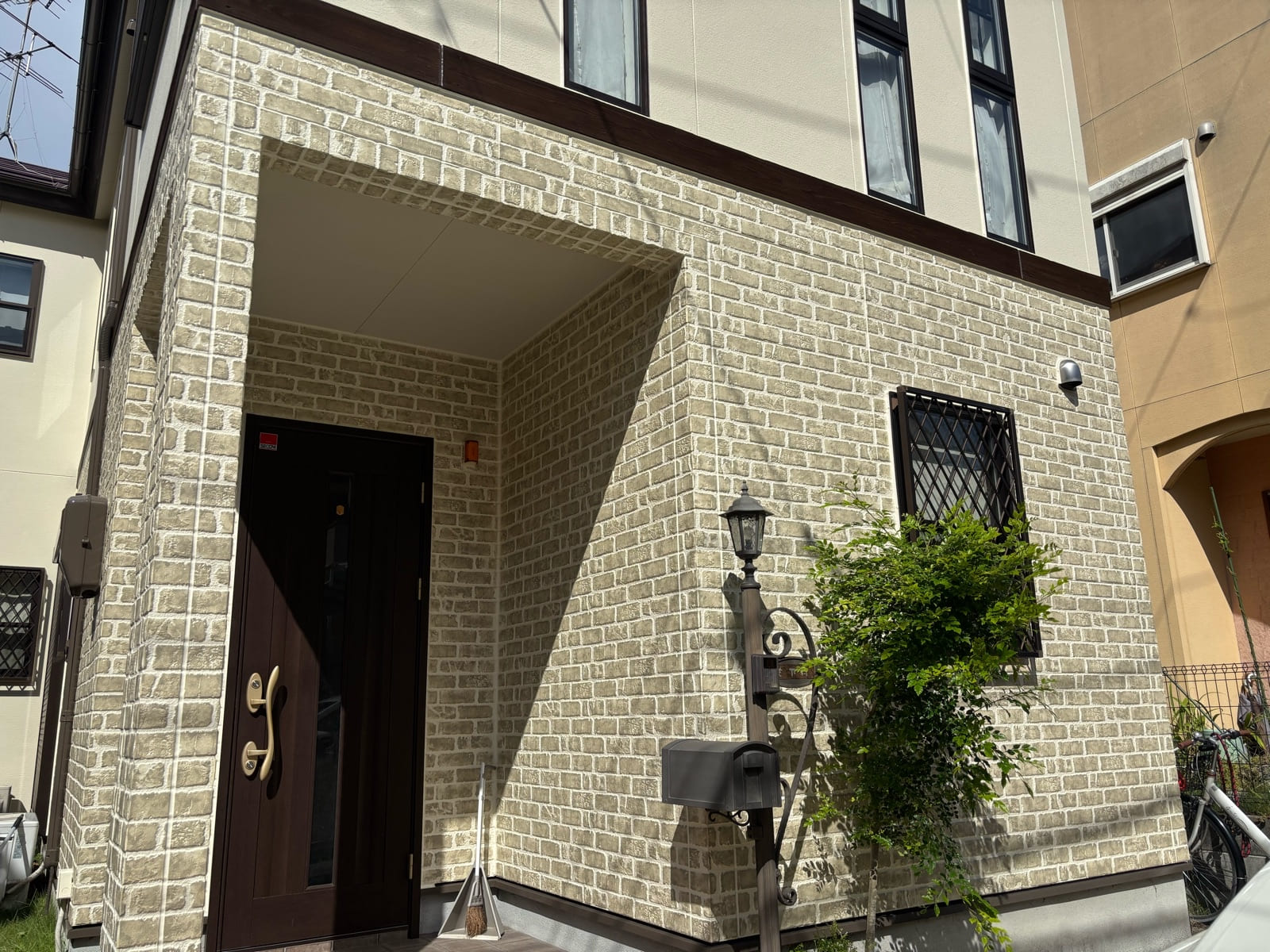 このたび奈良市SSM様邸にて、外壁・屋根の塗装工事をさせていただきました。 外壁の「プラチナシリコンREVO2000-IR」は、耐候性・遮熱性・低汚染性を兼ね備えた高機能塗料。 その上から「美壁トップクリヤーBC(3分艶)」を重ねることで、 外観に自然で上品な艶感✨が生まれ、塗膜の保護力もさらにアップ。 既存の風合いを活かしながら、しっかりと長持ちさせたいお家にぴったりの仕様です。 屋根は、既存の屋根材を撤去せずに新しい屋根材を重ねるカバー工法にて施工。 廃材が少なく、断熱・遮音性能も向上する人気の施工方法です。 今回は、元のデザインを活かしつつ、外壁と屋根の色味を刷新。 明るめのベージュにブラウンのアクセントがしっかり映え、 メリハリのあるスタイリッシュな仕上がりとなりました✨ 破風や窓まわりのラインも引き締まり、外観全体がぐっと引き立っています🌿 このたびは、塗装工事をご依頼いただき誠にありがとうございました。