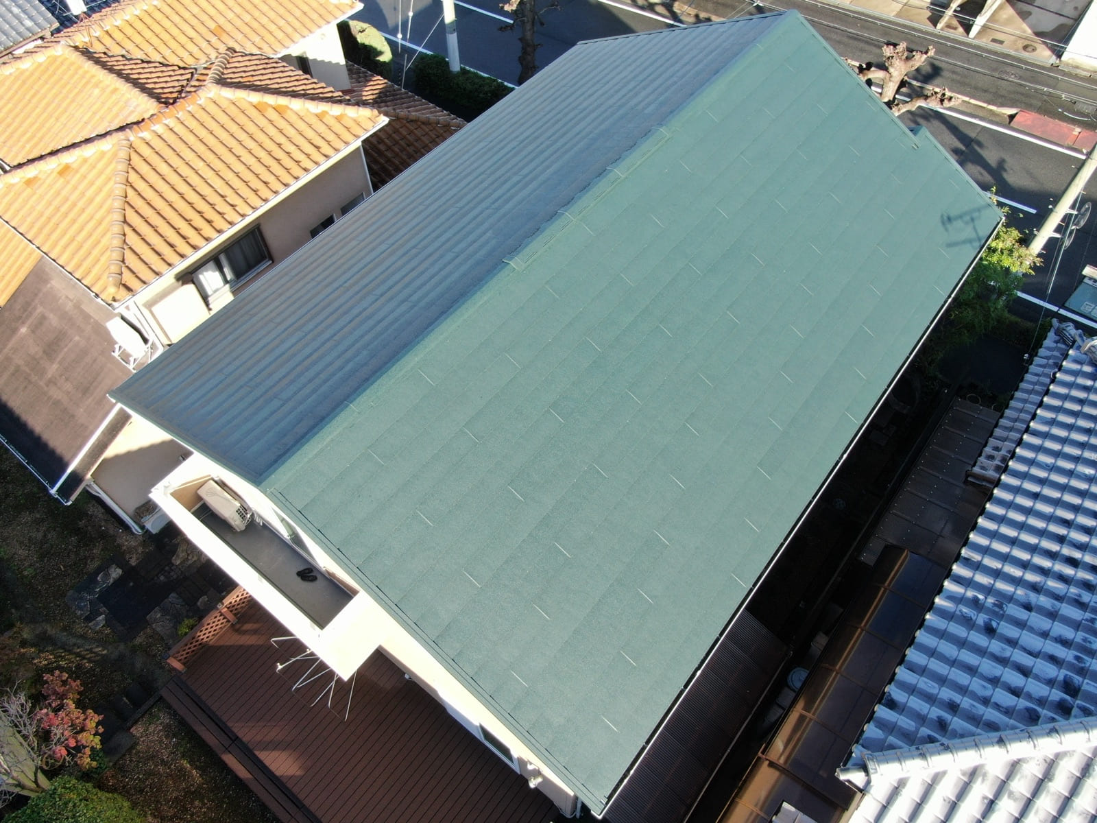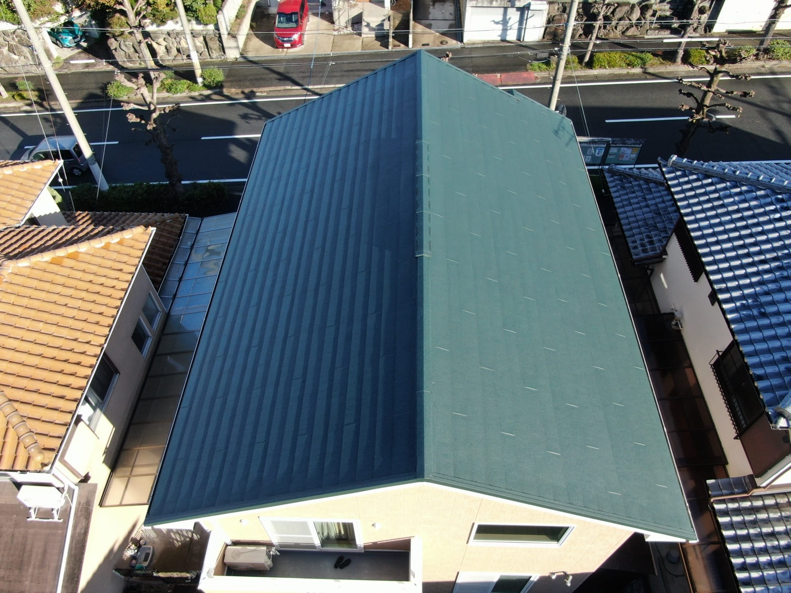 既存屋根の上から軽量で高耐久な屋根材にてカバー工法を施工しました。